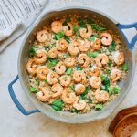In a pan, add olive oil and a knob of butter over medium heat and sear shrimp for 30 seconds on each side. Set to the side.
